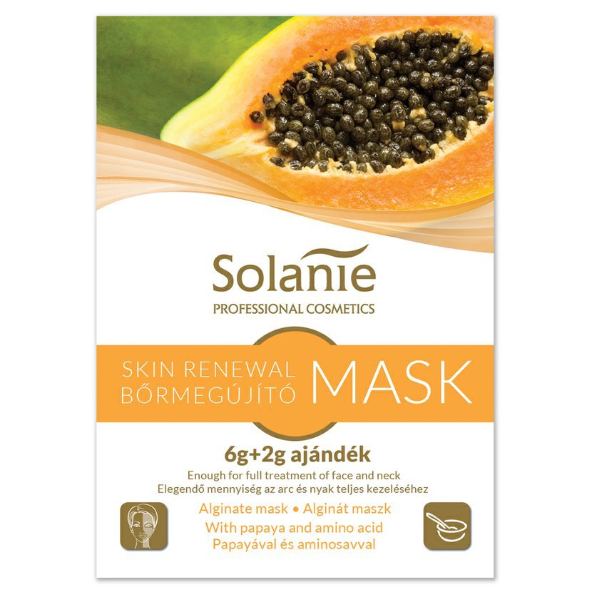 Balenie obsahuje 8 g prášku, ktorý sa zmieša z vlažnou vodou / 20 ml/ a vytvorí sa gumová konzistencia pleťovej masky. Maska sa odstráni po 15 min. stiahnutím v celku.