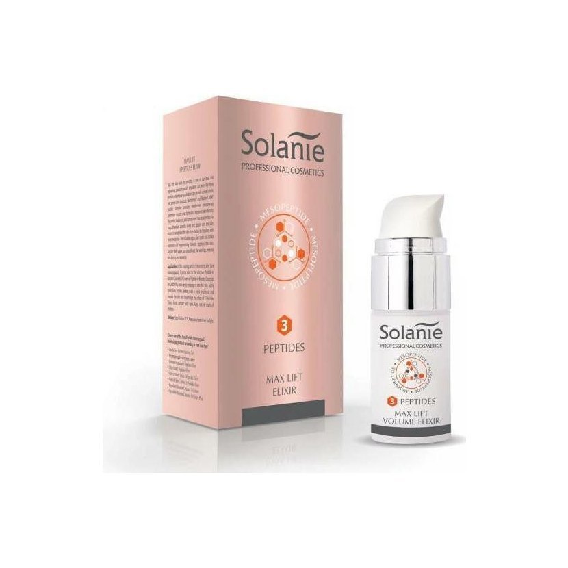 Použitie: Ráno a večer po vyčistení pleti aplikujte potrebné množstvo elixíru / 1 stlačenie dávkovača / na tvár a použite na deň Solanie Peptide-In Booster Ceramid krém , ktorý jemne vmasírujte do pokožky.